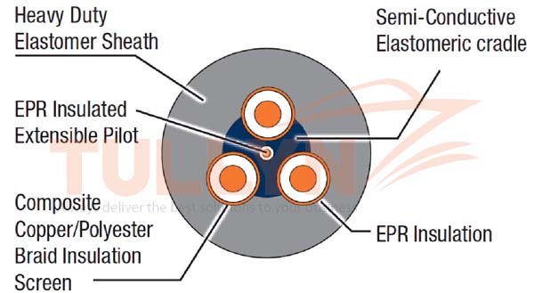 | 1×Central Extensible Pilot | EPR covered flexible stranded tinned copper conductor. |