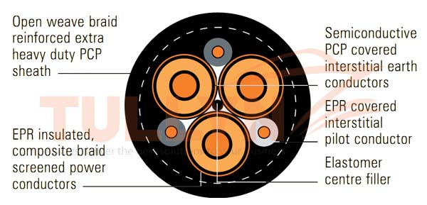 | 1×Interstitial Pilot | EPR covered flexible stranded tinned copper conductor. |