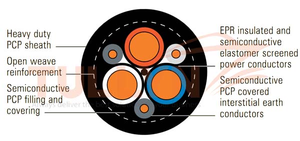 | 1×Interstitial Pilot | EPR covered flexible stranded tinned copper conductor. |